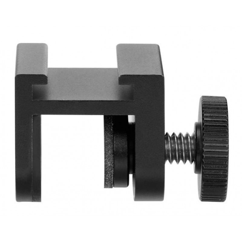 Крепление холодный "башмак" с зажимом на корпус смарфтона. Представленная конструкция предназначена для установки микрофона или осветителя на мобильное устройство или планшет. Регулируемая ручка блокировки делает ее совместимым с большинством моделей гаджетов.