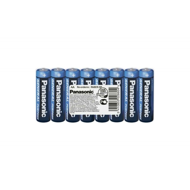 Батарейка Panasonic Gen.Purpose соответствует одному из наиболее распространенных форм-факторов: AA. Этот элемент питания обеспечивает напряжение, равное 1.5 В.