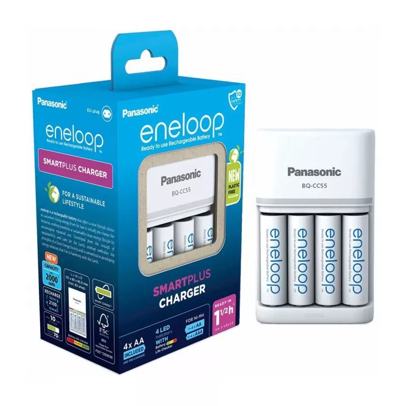 Зарядное устройство для аккумуляторов Panasonic Eneloop SmartPlus K-KJ55MCD40E разработано для легкой и быстрой зарядки аккумуляторов типоразмеров АА/ААА. Работает от сети 110-220 В.