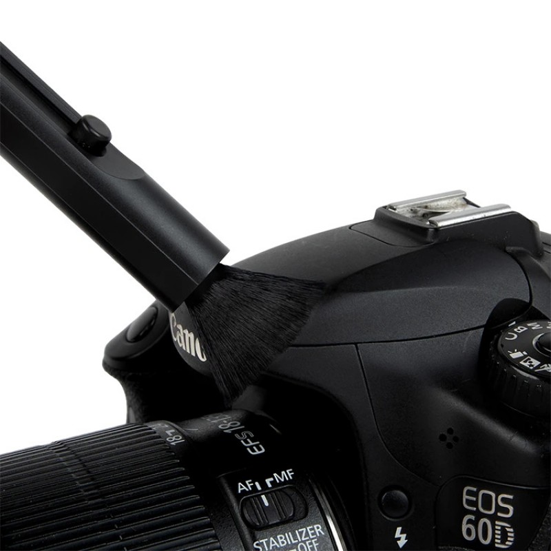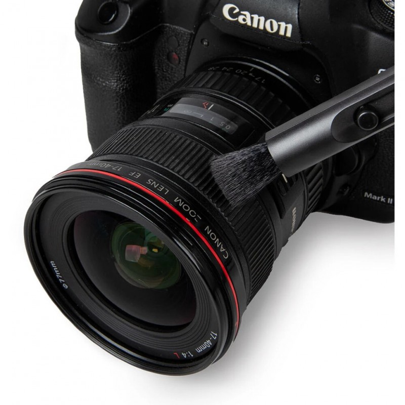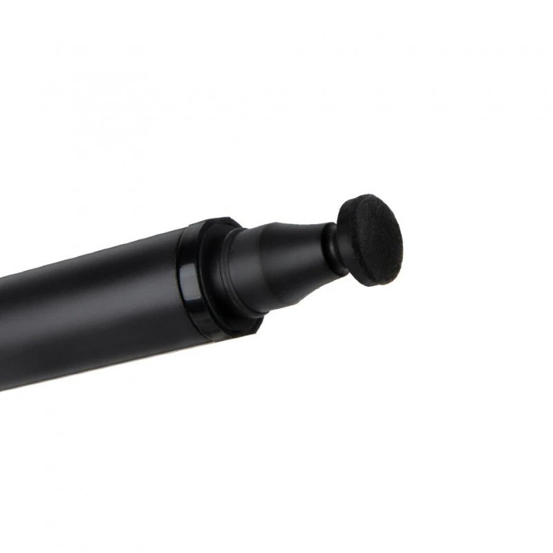 Карандаш оснащен выдвижной щеточкой и углеродным наконечником, что делает его идеальным инструментом для удаления пыли и загрязнений. Щеточка легко справляется с пылью, а углеродный наконечник эффективно устраняет отпечатки пальцев и пятна с поверхности линз и экранов.