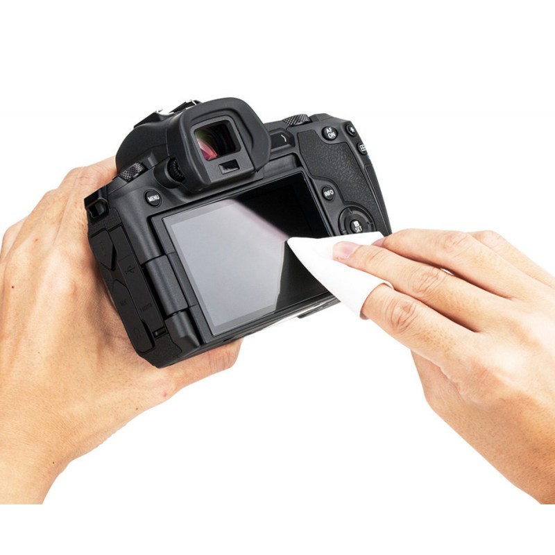 - Когда очистка объектива завершена, вы можете использовать эту салфетку для очистки экрана камеры и поверхности корпуса камеры.