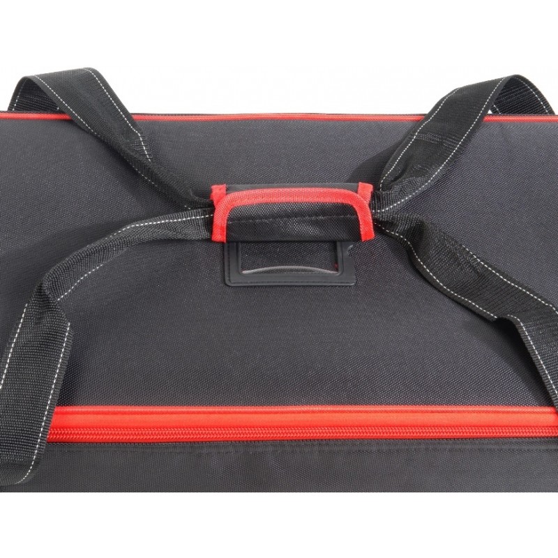 Переносить и переставлять сумку помогают прочные текстильные ручки шириной 5 см, которые можно соединить между собой стяжкой на липучке. Везти сумку удобно за пластиковую эргономичную ручку на заклепках.