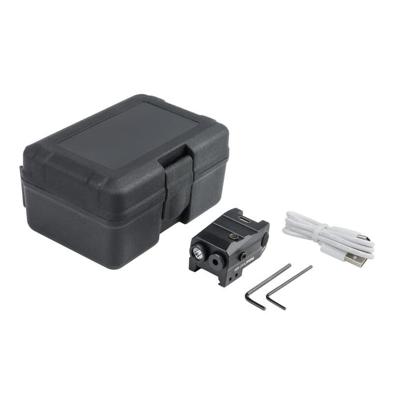 Корпус устройства выполнен из прочного, но легкого авиационного алюминия, анодное покрытие предотвращает появление бликов. Благодаря небольшим размерам и весу лазерный целеуказатель не утяжеляет оружие. Уровень влагозащищенности ЛЦУ – IPX4, что обеспечивает защиту от брызг и высокой влажности воздуха.