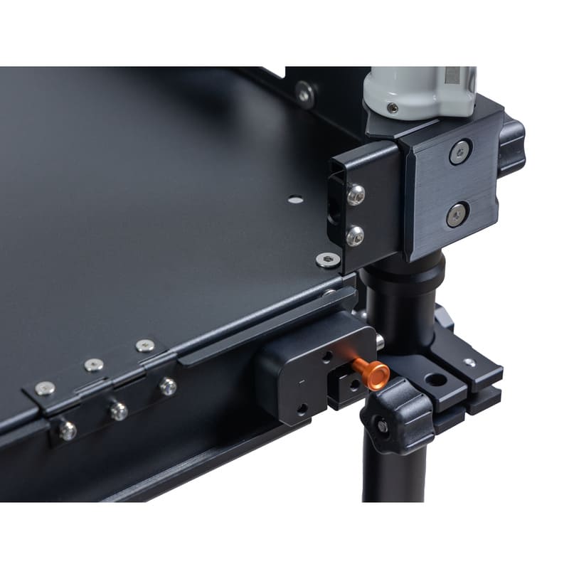 Поверхности полок и перемычек тележки оснащены широким набором монтажных отверстий и пазов разных типов и размеров: резьбовые отверстия 1/4" и 3/8", а также нерезьбовые посадочные места. Множество отверстий позволяет операторам индивидуально настраивать систему крепления и точно размещать необходимое оборудование.
