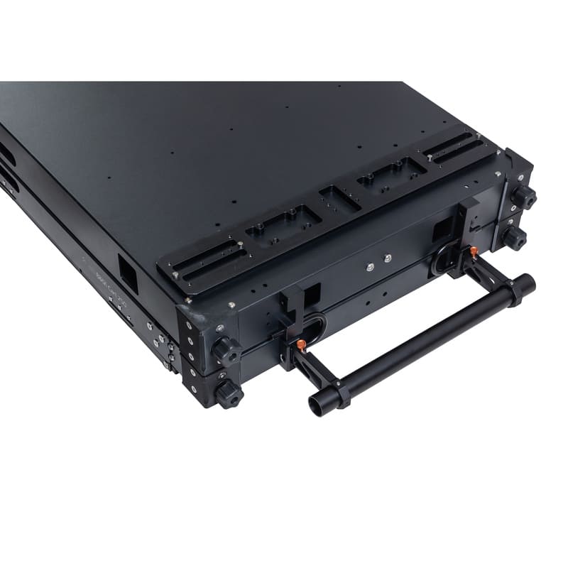 Один из бортиков верхней полки имеет складную конструкцию, он легко открывается и закрывается, облегчая процесс погрузки и разгрузки оборудования. Благодаря надежным замкам из алюминиевого сплава, бортик быстро защелкивается, обеспечивая сохранность груза во время транспортировки.