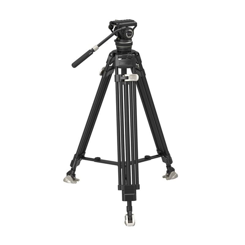Штатив имеет классическую 3-секционную 2-трубную конструкцию и снабжен полусферой 75 мм. Система с одним фиксатором на каждой ноге штатива позволяет быстро разбирать, собирать и устанавливать необходимую высоту в диапазоне от 94 см до 197 см. Резиновые опоры ног штатива гарантируют отличную устойчивость даже на скользкой поверхности. При необходимости их можно быстро снять, чтобы использовать двойные шипы для съемки на грунте.