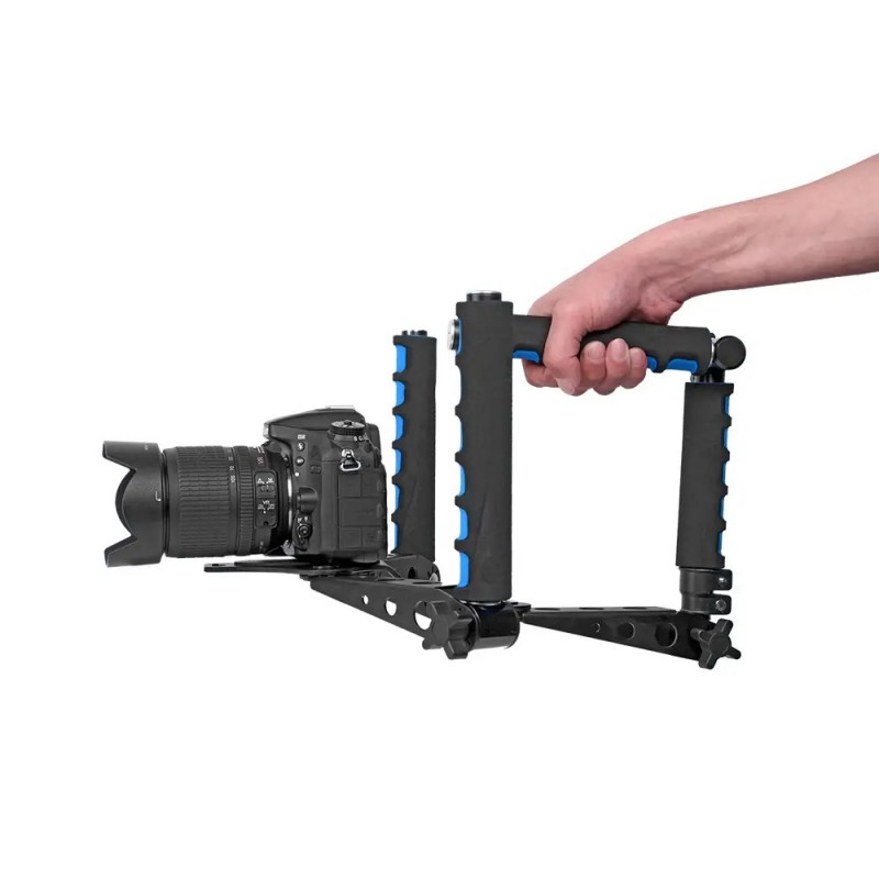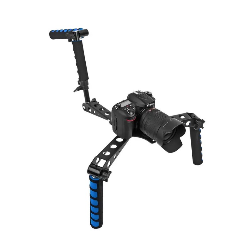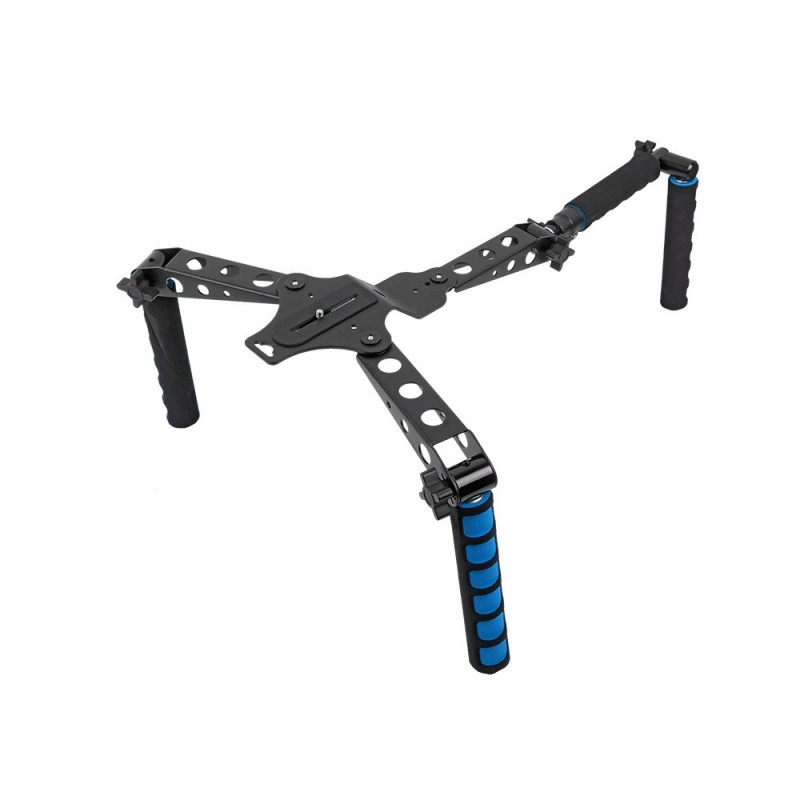 Многофункциональное устройство, которое в различных конфигурациях можно использовать, как наплечный штатив, плечевой упор, «клетку» для съемки с нижней точки и т. д. Основа конструкции сделана из стали, окрашенной порошковой эмалью, с перфорацией для облегчения веса.