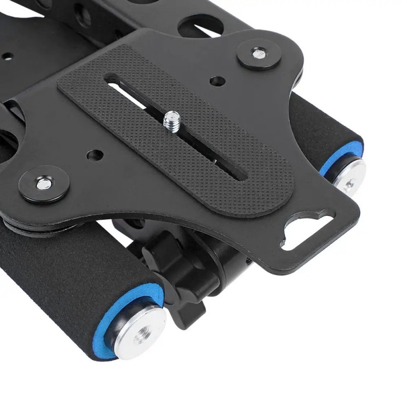 Снизу и сверху в ручках имеются отверстия 1/4 дюйма для крепления дополнительных аксессуаров (осветителей, микрофона и т. д.) Благодаря подвижному винту 1/4 дюйма камера может передвигаться по площадке штатива в пределах 70 мм.
