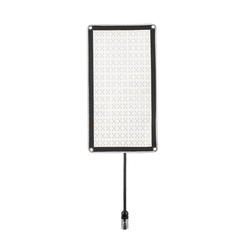 Осветитель питается от сети или от аккумулятора V-mount, позволяющего прибору работать автономно и сохранять непрерывность рабочего процесса. Площадка для установки аккумулятора, как и разъем для подключения кабеля, распложена на блоке управления панелью.