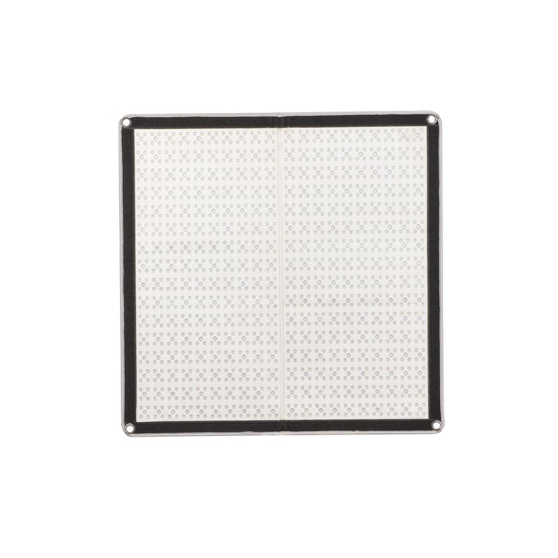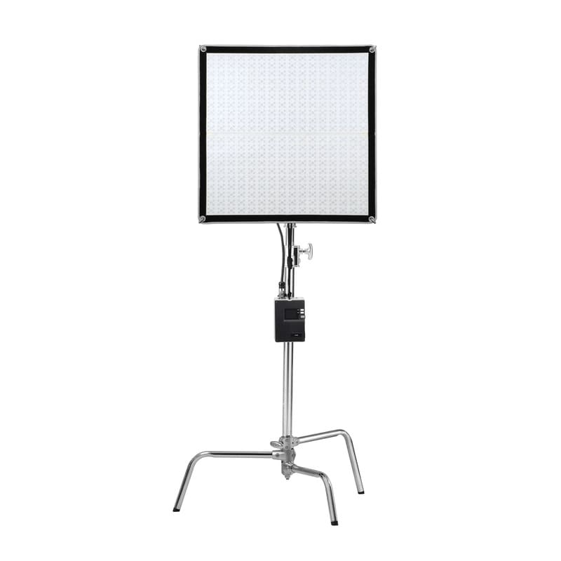Осветитель питается от сети или от аккумулятора V-mount, позволяющего прибору работать автономно и сохранять непрерывность рабочего процесса. Площадка для установки аккумулятора, как и разъем для подключения кабеля, распложена на блоке управления панелью.