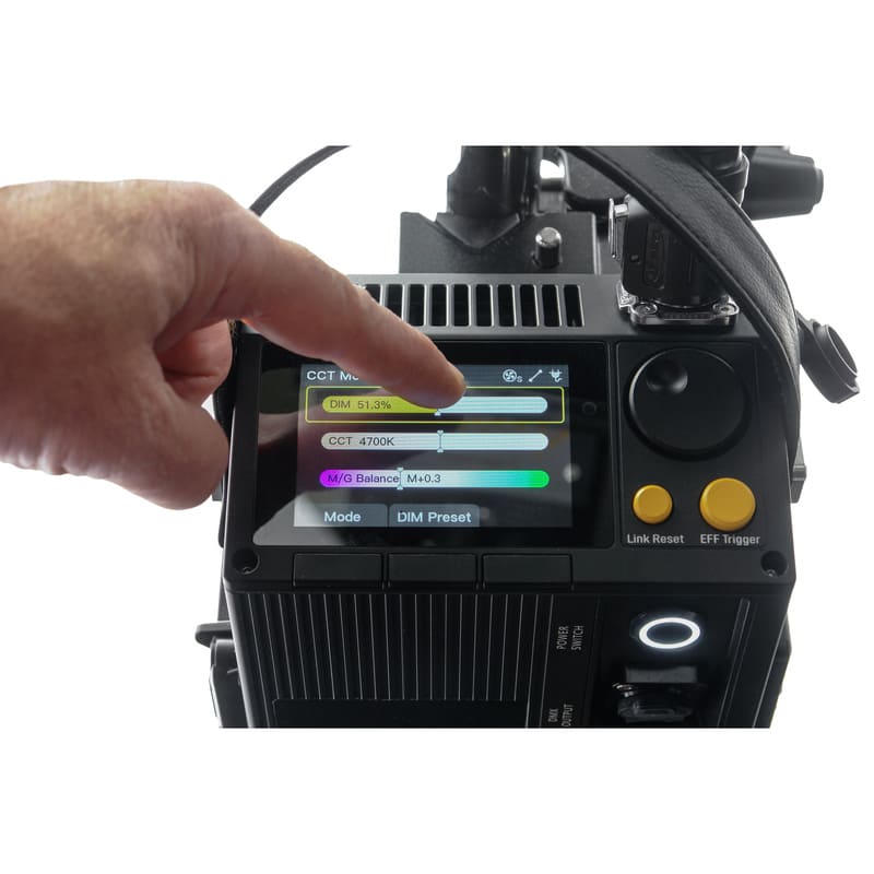 Устройство оснащено функцией плавной регулировки цветовой температуры в диапазоне от 2700K до 6500K, что гарантирует точное воспроизведение освещения для различных сценариев съемки. Дополнительная регулировка цветового сдвига по оси Green/Magenta (от −0.10 до +0.10) позволяет точно согласовать прибор с любыми источниками света.