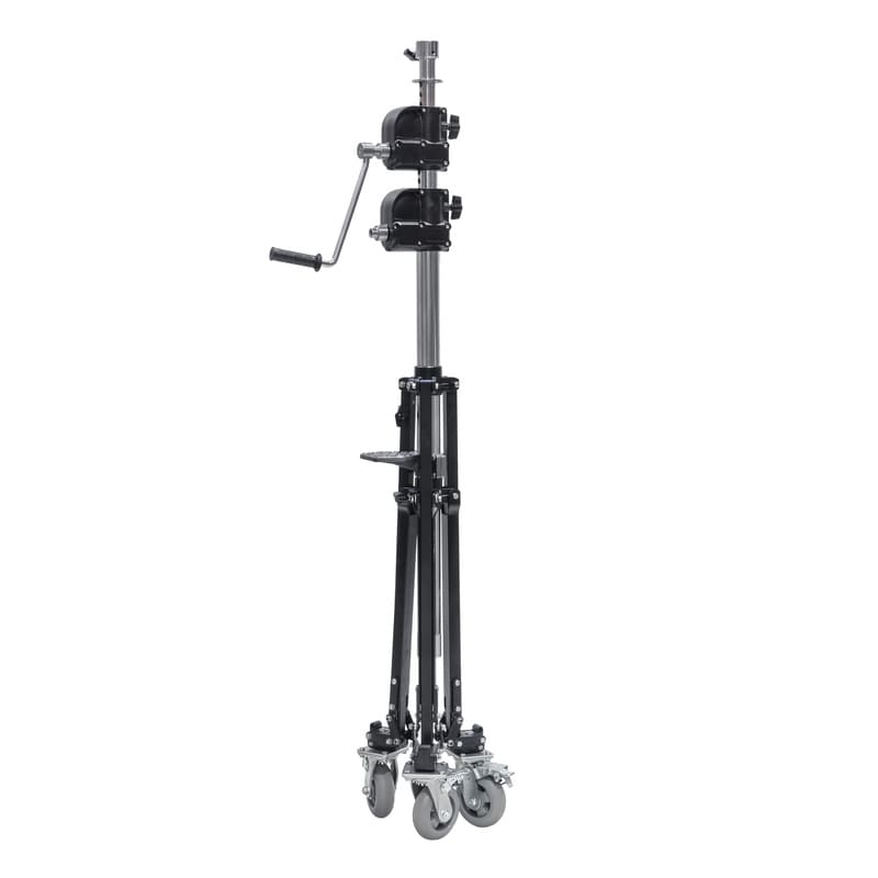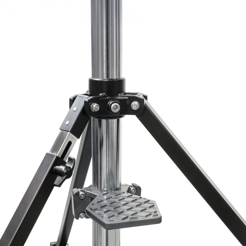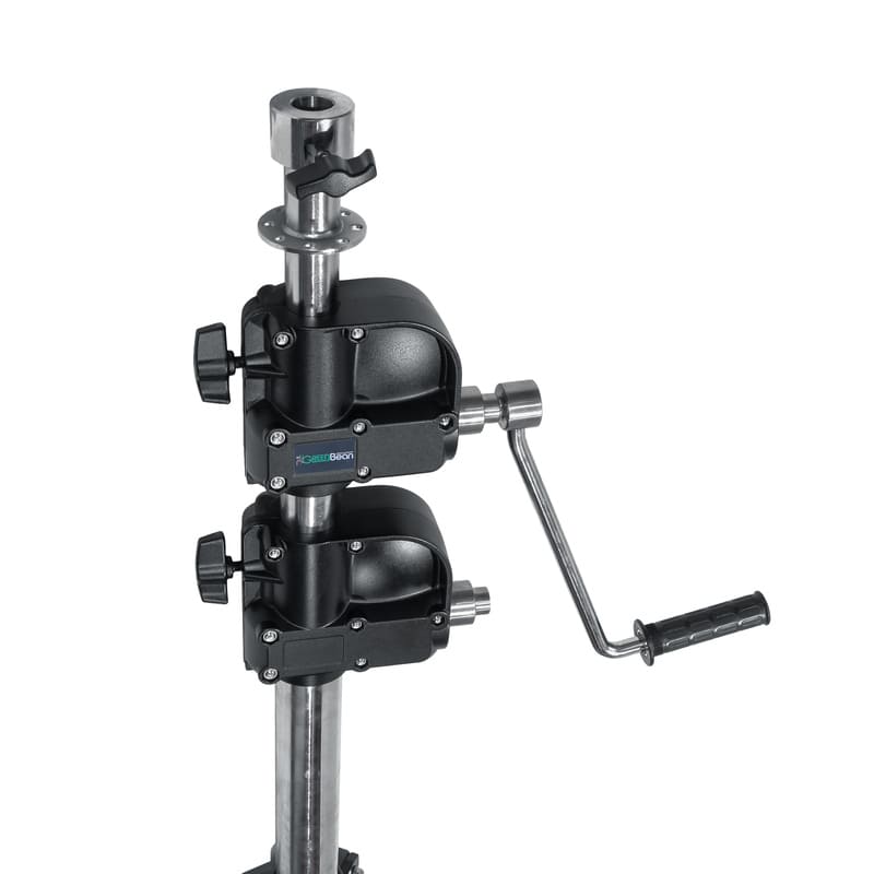 Основанием Titan PRO 368MB является стойка типа Wind-Up. Трехсекционная центральная колонна стойки из нержавеющей стали выдвигается с помощью двух редукторов с корпусами из литого алюминиевого сплава, с ручным приводом с большой съемной рукояткой. Конструкция стойки отличается высокой надежностью и стабильностью, обеспечивая возможность безопасной установки на стойку оборудования массой до 50 кг включительно.