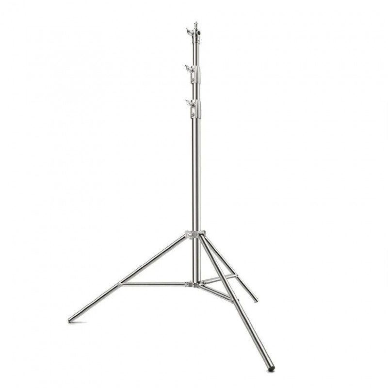 Изготовленный нержавеющей стали, штатив отличается долговечностью и устойчивостью к коррозии и влаге, что делает его отличным выбором для съемок на открытом воздухе. Регулируемая высота от 93,8 см до 280 см позволяет гибко адаптировать его под любые задачи, а надежные фиксирующие механизмы обеспечивают устойчивость и безопасность оборудования.